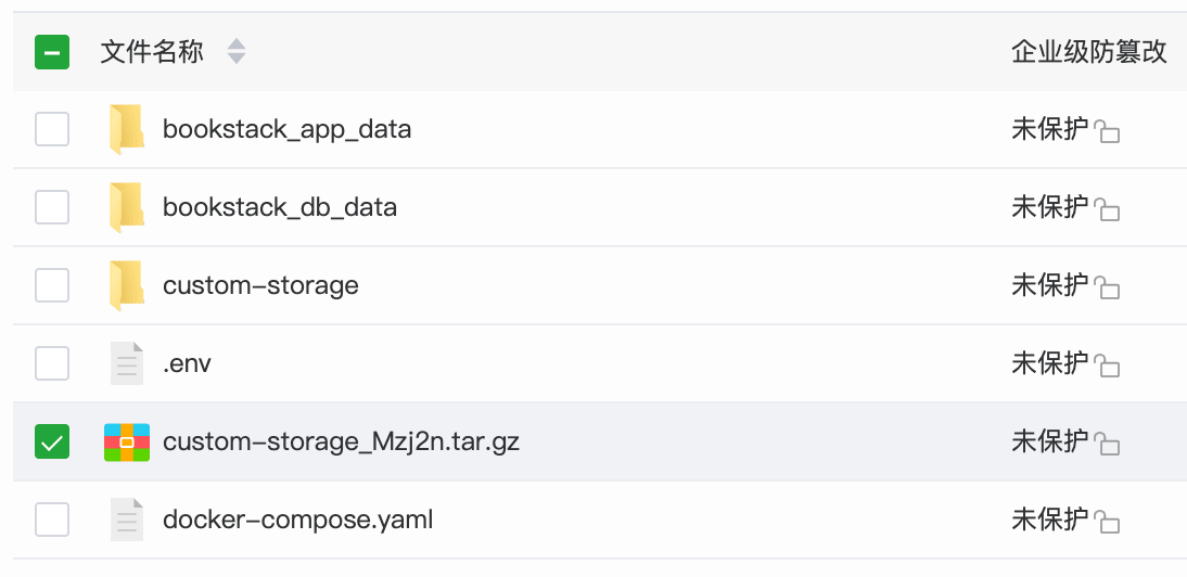 把custom-storage解压缩所得的文件放到bookstack的根目录下与其bookstack_app_data和bookstack_db_data在同一级。