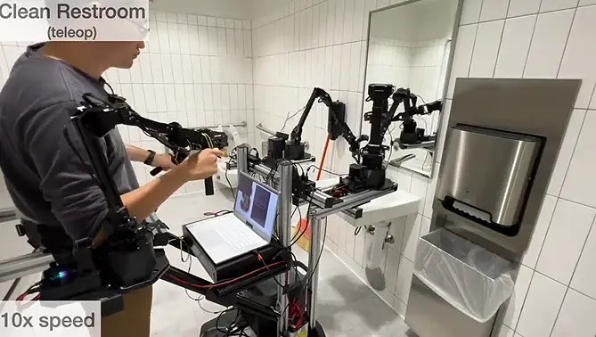 首先需要明确的是,Mobile ALOHA并不是一个机器人,而是一个操作系统。借助这个系统,它可以实现多项家务功能,包括打开厨房用具柜、洗锅、炸虾、烹饪等,共计50多种任务。
