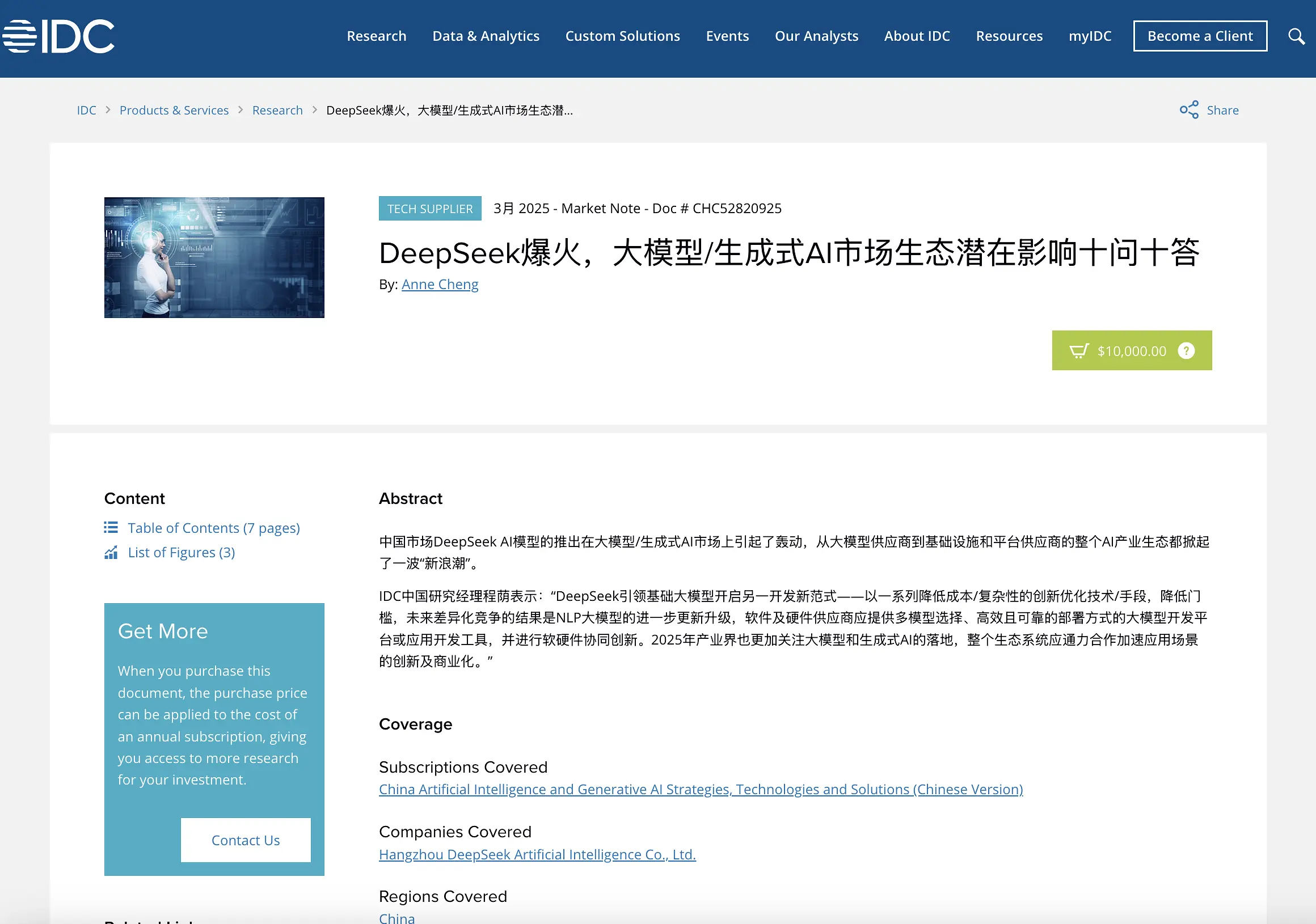 IDC最近对中国的DeepSeek有比较多的分析报告,见下图,当然每份报告都价值不菲。