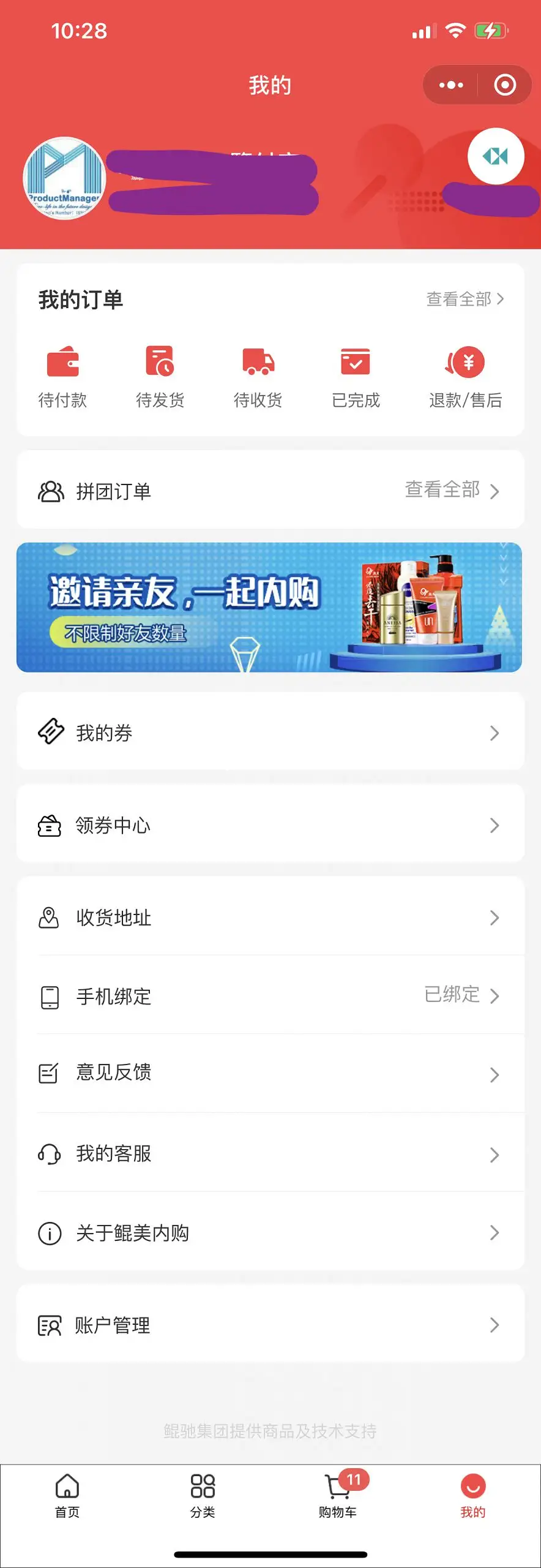 鲲美内购小程序架构简洁明了,主要分首页商品详情页+分类+购物车+用户个人中心。其他的关于鲲美内购小程序的功能啊没什么可讲的了,一款产品的好坏能生存能力,成长能力主要还是要看老板和团队。