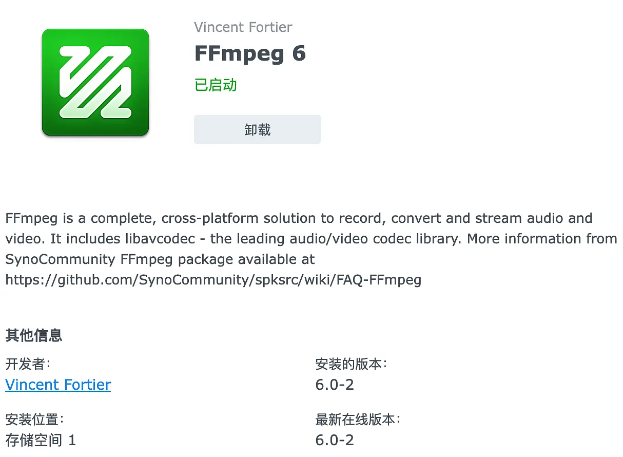 1、卸载Video Station(注意不要勾选删除Video Station数据库)、卸载Advanced Media Extensions、卸载FFmpeg,然后重新安装这三个软件。