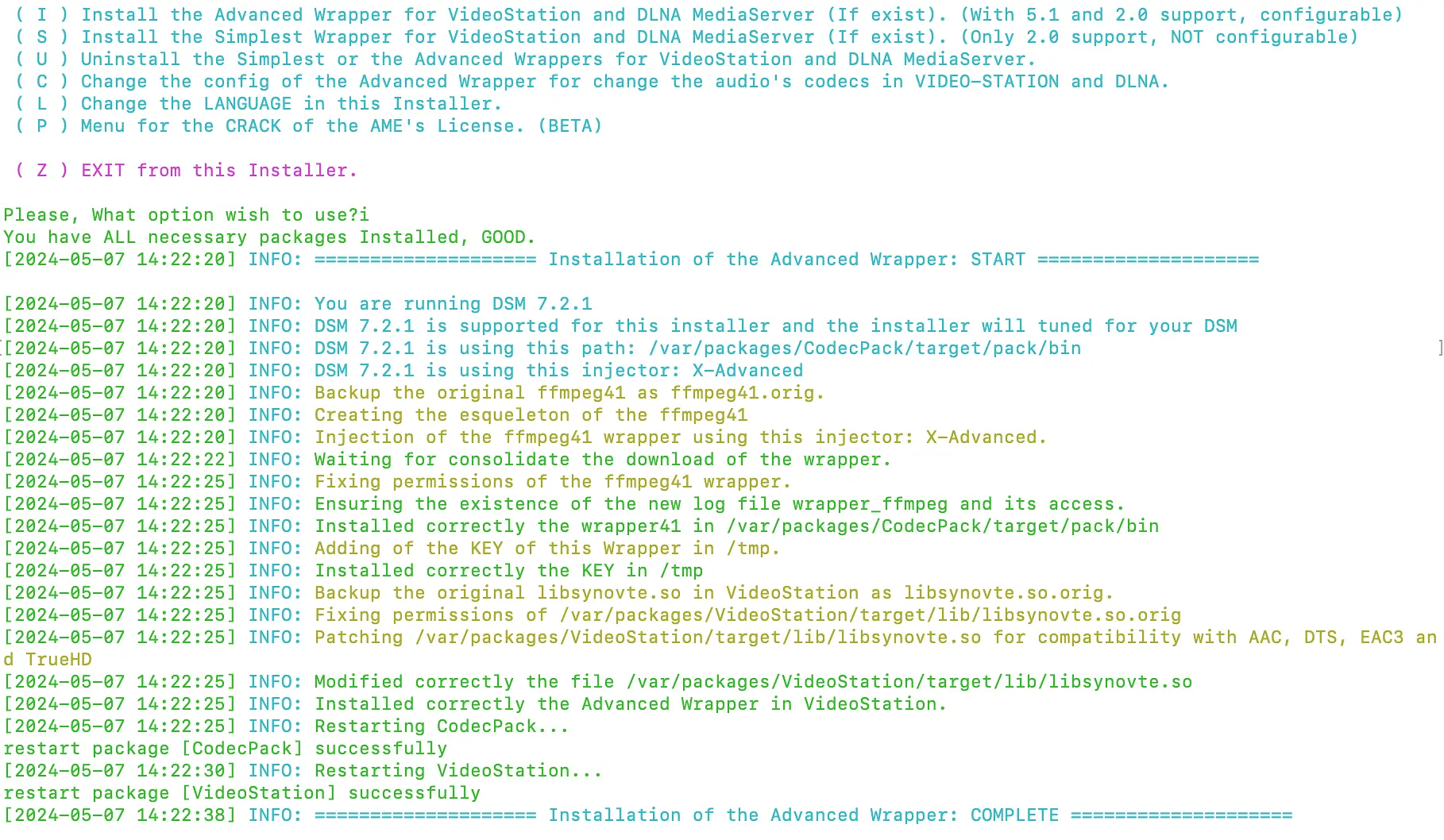 解决Wrapper_VideoStation的音轨问题无法播放的脚本命令installer_OffLine.sh如下,无法用梯子但只能用手动修复的朋友可以直接复制使用(2024年5月7日从作者darknebular处复制过来)。